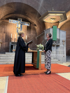 Das Dekanat Bamberg ist um eine Orgel reicher. Die beiden Dekanatskirchenmusiker Markéta Schley-Reindlová und Michael Goos freuen sich über ihr neues Instrument, eine Truhenorgel aus der Werkstatt Tzschöckel.
